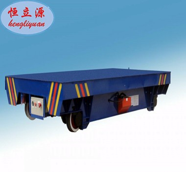 電動平車,又稱電動平板車、電平車、臺車、過跨車、電動軌道車、地爬車等,是一種廠內(nèi)有軌電動運輸車輛,首先它是一種軌道型運輸車輛,需要在地面上鋪設(shè)軌道,軌道一般為工字型面接觸道軌;其次它是電驅(qū)動車輛,在電機(jī)減速機(jī)驅(qū)動下自動運行,再次它是一種平板車,臺面平整無廂蓋,特殊情況下也可以是非平面但無廂蓋,車體無方向盤只有前進(jìn)后退方向(即使轉(zhuǎn)彎也城靠軌道轉(zhuǎn)彎)。此種車輛具有結(jié)構(gòu)簡單、使用方便、承載能力大、不怕臟不怕砸、維護(hù)容易、使用壽命長等特點,因其方便、壯實、經(jīng)濟(jì)、實用、易清理等諸多優(yōu)點,成為企業(yè)廠房內(nèi)部及廠房與廠房之間短距離定點頻繁運載重物的運輸工具。