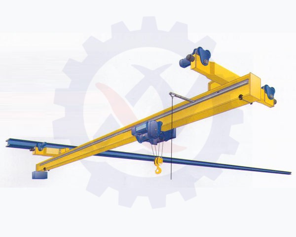 與CD1、MD1型電動(dòng)葫蘆配套使用,構(gòu)成有軌運(yùn)行的單梁起重機(jī)。該懸掛起重機(jī)的運(yùn)行軌道使用用工字鋼,主梁兩端懸掛于工字鋼下方前后運(yùn)行,是小噸位起重設(shè)備。